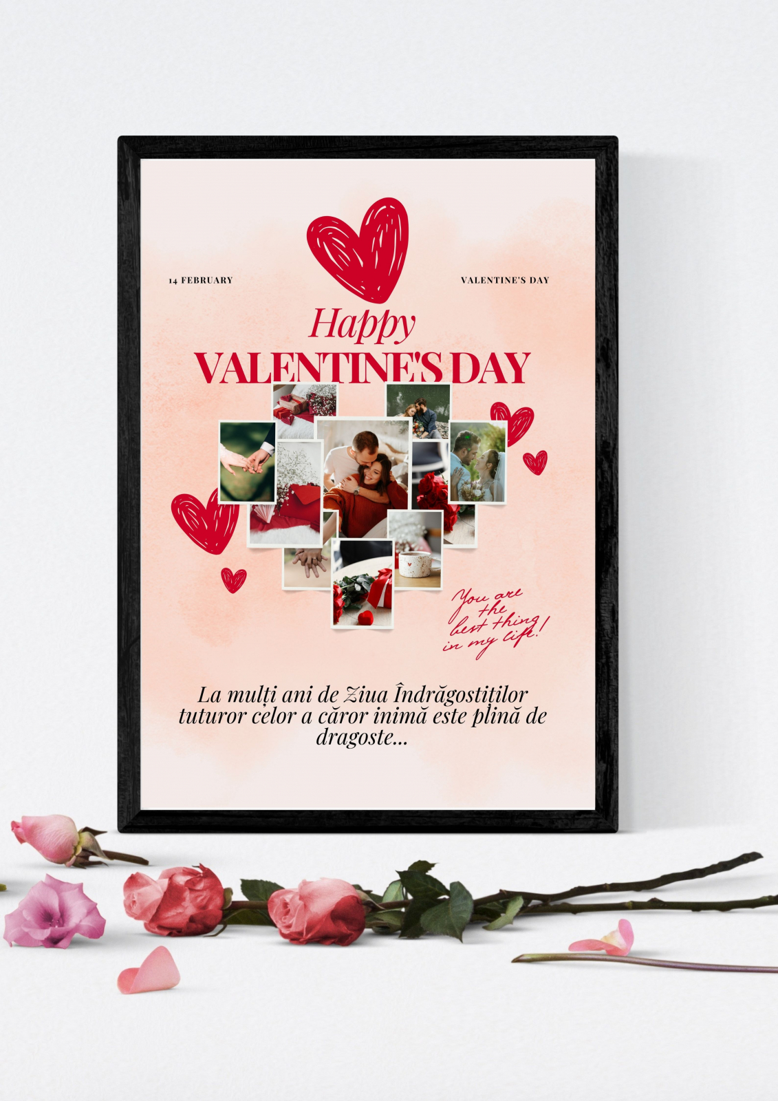 Descoperă tabloul personalizat de Sfântul Valentin, o piesă de artă unică care sărbătorește dragostea în cel mai rafinat mod! Alege între rama albă sau neagră, confecționată din materiale de înaltă calitate, perfectă pentru a completa orice decor. Personalizează tabloul cu numele voastre, o dată specială sau un mesaj de dragoste, pentru a transforma fiecare detaliu într-o amintire prețioasă.