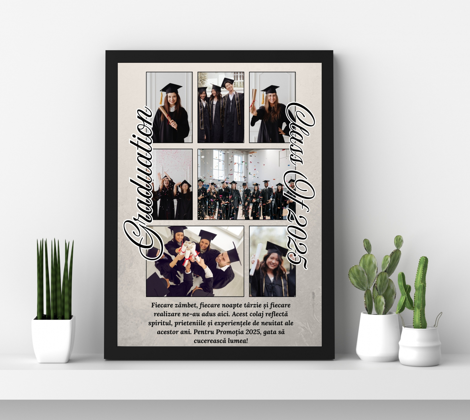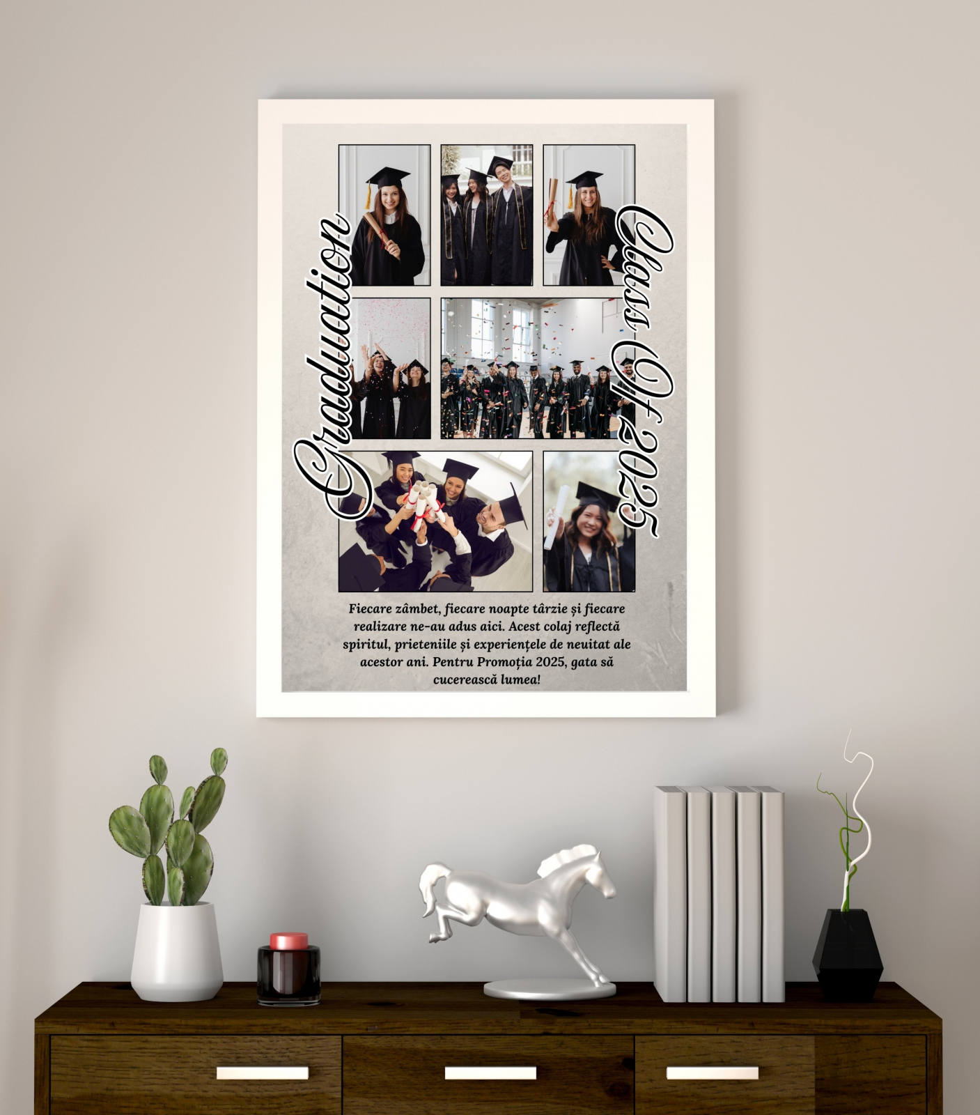 Celebrează realizările academice cu tablourile personalizate canvas dedicate absolvirii! Aceste opere de artă unice sunt create pentru a captura momentele importante și emoțiile dintr-o etapă semnificativă a vieții tale. Fie că este vorba despre o diplomă, un discurs emoționant sau amintiri de la festivitate, tablourile noastre transformă fotografiile și citatele inspiratoare într-un colaj vibrant, imprimat pe canvas de calitate superioară. Oferă un cadou memorabil pentru absolvenți sau decorează-ți camera cu un simbol al dedicării și muncii depuse. Lasă-ne să te ajutăm să păstrezi vie amintirea acestei realizări cu un tablou personalizat care va fi admirat cu siguranță de fiecare dată!